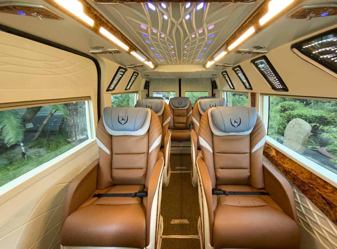 + Số lượng ghế 08/16 : Tạo không gian rộng dãi,kích thước ghế lớn,có chỗ để tay,ghế có thể ngả từ 10~45 độ tùy theo nhu cầu của khách
